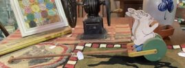 The show will feature quality antiques dealers from throughout the Northeast set up under pavilion cover and on the lawn at the Gloucester County 4-H Fairgrounds – 275 Bridgeton Pike (Rt. 77), one mile south of the Yellow Garage Antiques storefront and the downtown historic district. The sale will include antique country and formal furniture, pottery, fine art, glass, stoneware, textiles, quilts, dolls, Americana, jewelry, clocks, porcelain, sterling, toys, advertising, metal-ware, and much more. Refreshments and unlimited free parking will be available throughout the day.